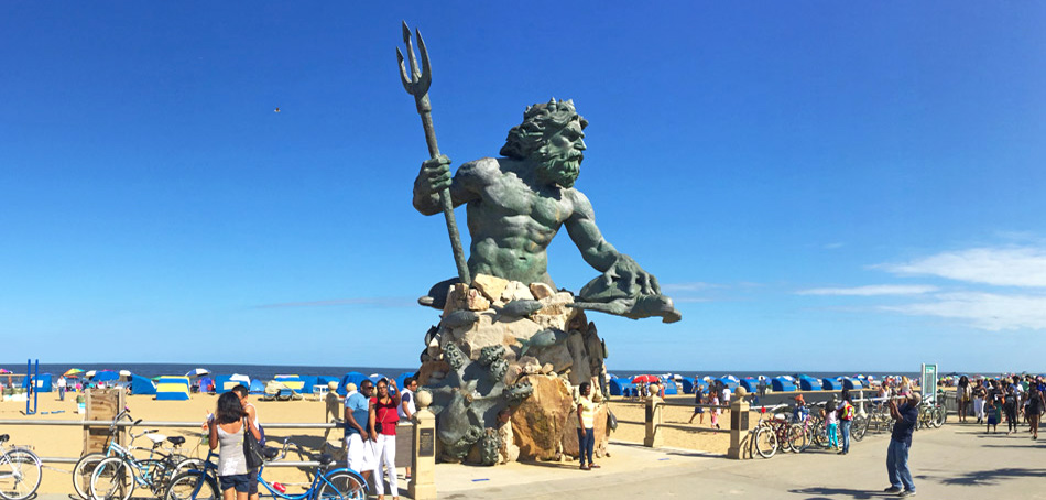 - Virginia Beach Boardwalk & Oceanfront: A 3-mile long boardwalk perfect for walking, biking, and enjoying ocean views. Don't miss the famous Neptune Statue.
